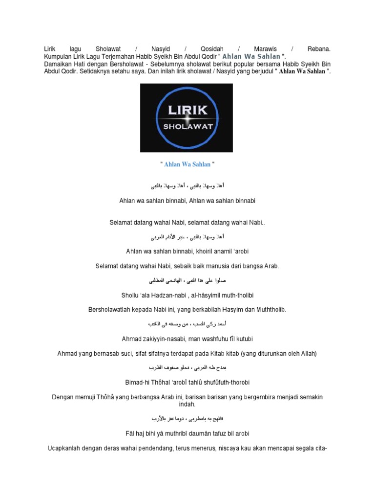 Teks Lirik Sholawat Ahlan Wa Sahlan Binnabi dan Artinya - Sholawat ahlan wa sahlan binnabi mungkin serng kita dengar dibawakan oleh banyak pelantun qasidah. Hingga satu tahun lebih perilisannya cover musik lagu Aisyah. Sandaran Harapan Lahad Walid Melakar Cinta Di Pintu Syurga Melakar Cinta Di Pintu Syurga.